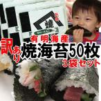 3袋セット 訳あり有明産焼き海苔 全型50枚 送料無料 佐川急便利用 【店舗発送】送料無料:沖縄県+1000円 離島地域+750円 北海道+300円