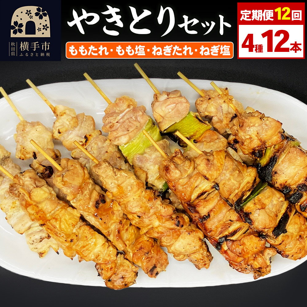 【ふるさと納税】《定期便12ヶ月》やきとりセット 計12本(ももたれ、もも塩、ねぎたれ、ねぎ塩)