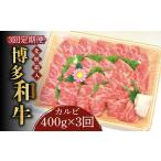 ふるさと納税 行橋市 【3ヵ月毎定期便】博多和牛A5〜A4 カルビ400g焼肉たれ付【化粧箱入】(行橋市)全4回