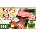 【ふるさと納税】【定期便12か月】あか牛サーロイン肉 1kg (5枚~6枚 ) 馬刺し 200g 1.2kg×12回 合計14.4kg 食べ比べ セット (赤身 100g/霜降り 50g/たてがみ 50g) あか牛 和牛 牛肉 肉 ステーキ用 馬刺 刺し身 国産 九州産 熊本県産 冷凍 送料無料