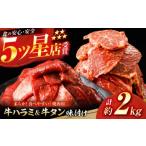 ふるさと納税 牛肉 タン 高知県 高知市 牛ハラミ & 牛タン 味付け 各種約200g×5 総計約2kg / 訳あり 小分け 柔らかい 一口サイズ (有)山重食肉 ATAP165