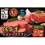 ふるさと納税 牛肉 ステーキ 佐賀県 鹿島市 定期便3カ月配送 佐賀牛ヒレシャトーブリアン200g×5枚 | 最高級 佐賀牛の最高峰 肉の芸術 五感で味わう極上肉 シ…