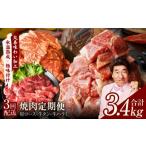 ふるさと納税 牛肉 焼肉・バーベキュー 大阪府 泉佐野市 アキラ商店 焼肉3種盛り合わせ 総量 3.4kg(牛ハラミ/牛タン/豚トロ) 焼肉用 焼くだけ 小分け BBQ …