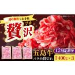 ふるさと納税 牛肉 バラ(カルビ) 長崎県 新上五島町 全12回定期便 希少で上品なお肉をご家庭で 五島牛 バラ 小間切れ 3パック(1.2kg)6〜8人前 切り落とし …