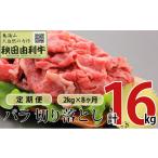 ふるさと納税 牛肉 バラ(カルビ) 秋田県 にかほ市 《定期便》8ヶ月連続 秋田由利牛 バラ切り落とし 2kg(1kg×2パック)