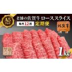ふるさと納税 牛肉 ロース 佐賀県 多久市 定期便 12ヶ月 老舗の 佐賀牛 A5 ロース スライス 1kg ×12回 毎月お届け 全12回 | 佐賀県産 国産 黒毛和牛 和牛 肉…