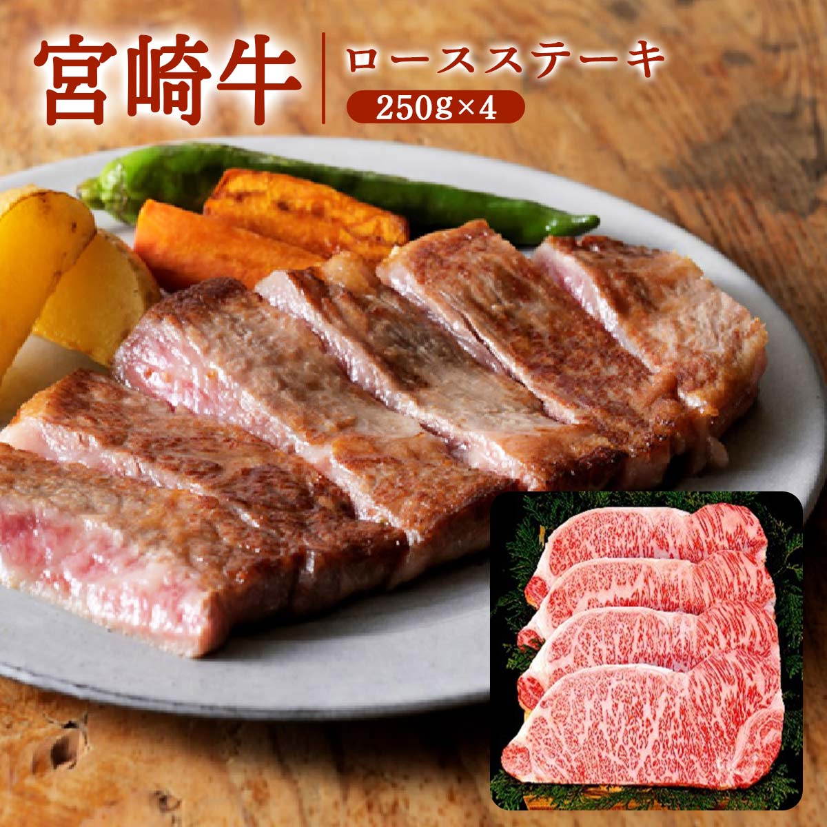 【10%OFF 楽天スーパーSALE限定】[ミヤチク] 牛肉 宮崎牛ロースステーキ 250g×4 宮崎牛 黒毛和牛 上質 ステーキ 焼肉 ロース お取り寄せ