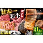 ふるさと納税 【12回定期便】【訳あり】A4-A5 長崎和牛 焼肉切り落とし 500g×2(肩ロース/バラ) [DBS048] 訳アリ 牛肉 肩ロース バラ 長崎県小値賀町