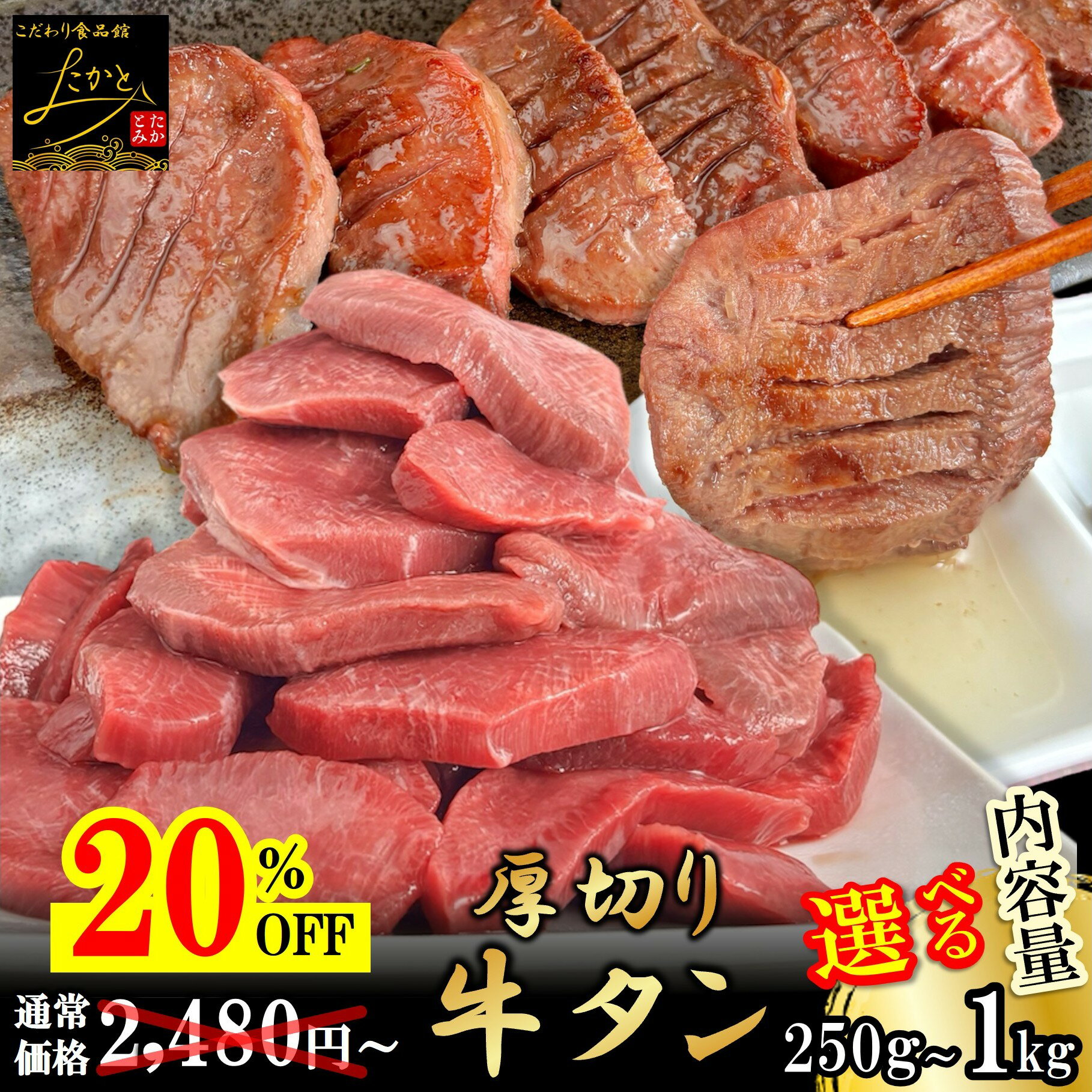\20%OFF!30枚限定クーポンで更に10%OFFの1,782円〜に/ 牛タン 訳あり 厚切り 8mm 1袋 250g入り 送料無料 選べる 内容量 1袋/2袋/3袋/4袋 バーベキュー 肉 食品 お取り寄せ スライス タン 焼肉 牛 塩味 BBQ 牛たん 味付けなし お肉 牛肉 肉厚 極厚 パーティー