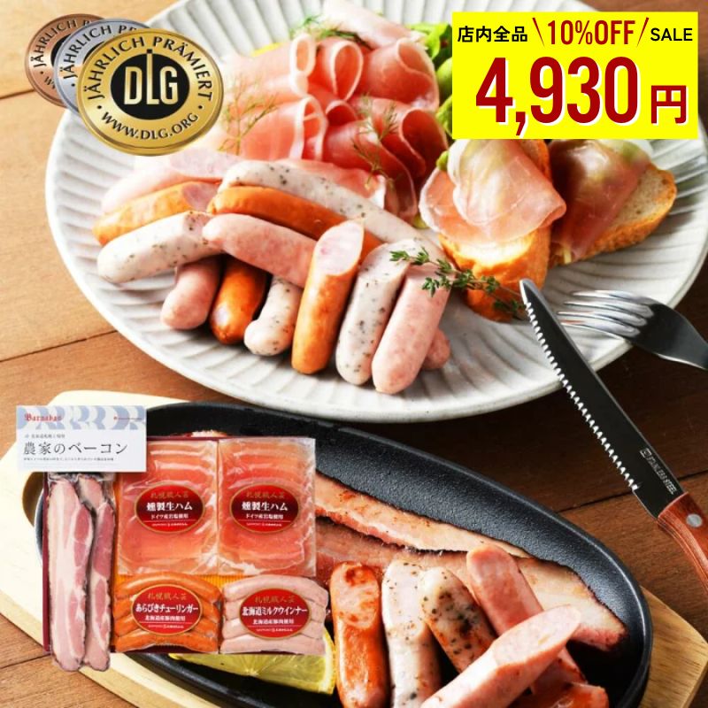 \スーパーSALE!スタートダッシュ20%OFFクーポン配布!4日20:00〜23:59/ 【送料無料】歳暮 内祝い 札幌バルナバハム DLG金賞受賞「農家のベーコンセット050N084」ベーコン 北海道産 ウインナー 生ハム 北海道 高級ハム ギフトセット お取り寄せ プレゼント お中元