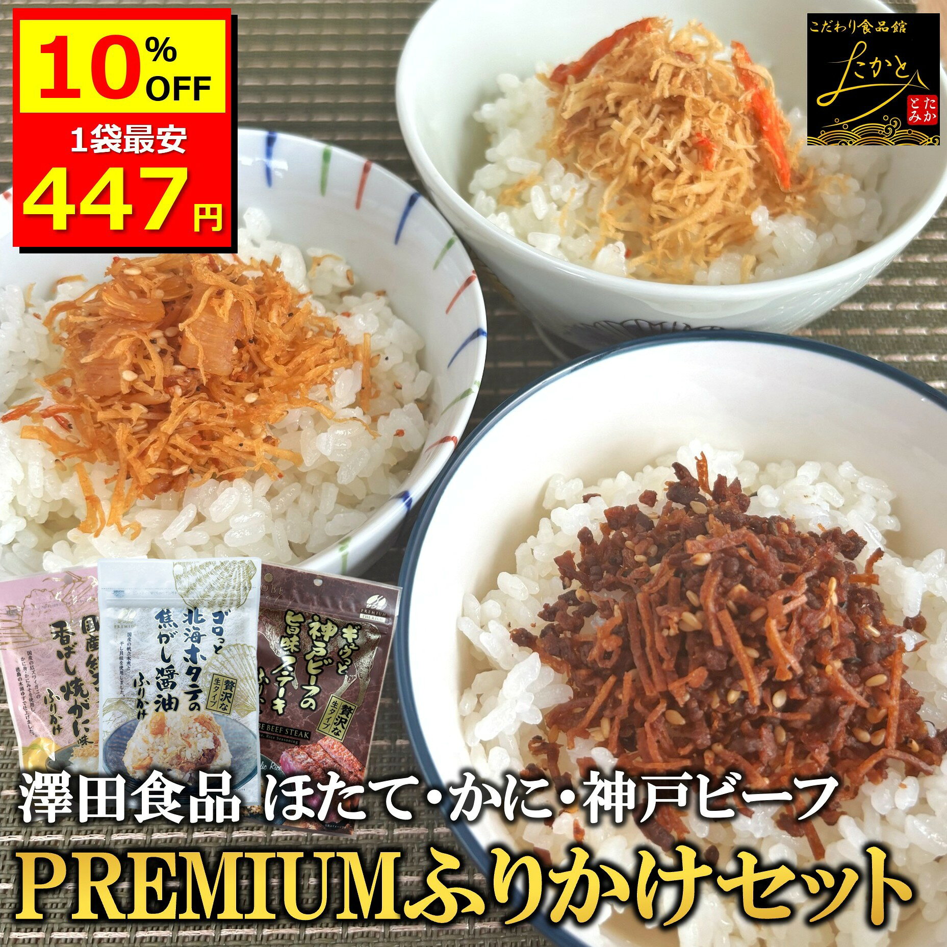 \10%OFF!30枚限定クーポンで更に10%OFFの1,450円〜に/ 澤田食品 プレミアム ふりかけ セット 3種 各1袋/各2袋 送料無料 ホタテふりかけ かにふりかけ 神戸牛ふりかけ 詰め合わせ 生ふりかけ ホタテ 帆立 カニ 蟹 神戸ビーフ ご飯のお供 おにぎり 混ぜご飯 お弁当