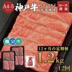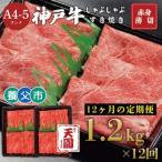 【ふるさと納税】【毎月定期便】【ふるさと納税 定期便】神戸牛 霜降り肩ロースしゃぶしゃぶすき焼き1.2kg×全12回【配送不可地域:離島】【4084084】