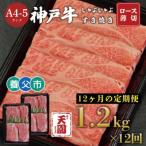 ふるさと納税 牛肉 すき焼き 兵庫県 尼崎市 毎月定期便 ふるさと納税 定期便 神戸牛 霜降り肩ロースしゃぶしゃぶすき焼き1.2kg×全12回 4084084