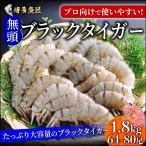 【送料無料】無頭ブラックタイガー 大容量1.8kg(64~80尾)|冷凍・業務用・BBQ・パーティーに最適!