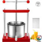 手動プレス、蜂蜜圧搾機 脱水機、ステンレス鋼の野菜詰め物絞り器、ジュース、サイダー、ワイン、オリーブオイル用の滑り止めの赤いシリコンハンドル 5.5L