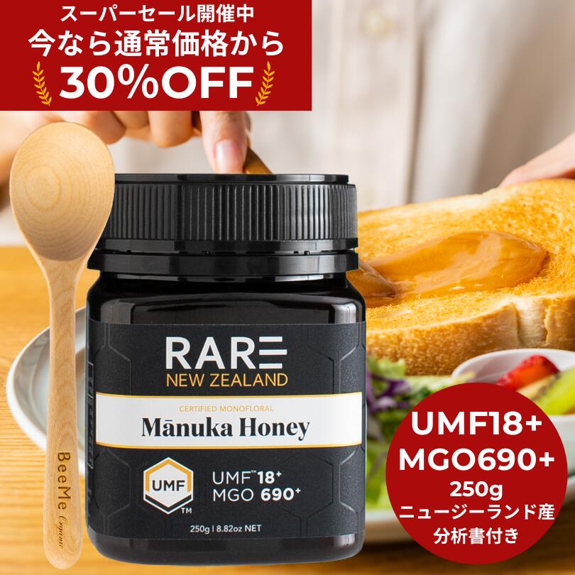 ★30%OFF!スーパーSALE限定割引★【送料無料】マヌカハニー UMF18+ 250g マヌカハニー専用スプーンセット★レアNZ★ニュージーランド産の無添加 無農薬 蜂蜜 100%天然(はちみつ・ハチミツ) ハチミツ 蜂 ハニー ギフト マヌカハニー