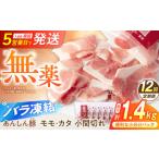 ふるさと納税 豚肉 モモ 岐阜県 白川町 12回定期便 《バラ凍結》 無薬育ちの豚肉 あんしん豚 モモ・カタ 小間切れ 1.4kg(280g×5袋)豚肉 定期便 小分け 薄…