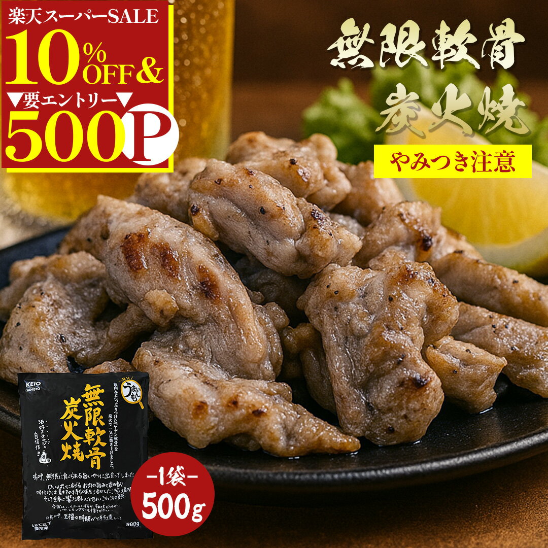 \楽天スーパーSALE10%OFF/ 【 無限軟骨炭火焼 500g 】 鶏 軟骨 なんこつ おつまみ 肴 炭火焼き ヤゲン 冷凍食品 鳥の炭火焼き(鶏の炭火焼き/焼鳥/炭火焼き鳥)お肉 訳あり 在庫処分 食品 レトルト 非常食 食べ物 お試し 鶏肉 肉 お取り寄せグルメ 送料無料