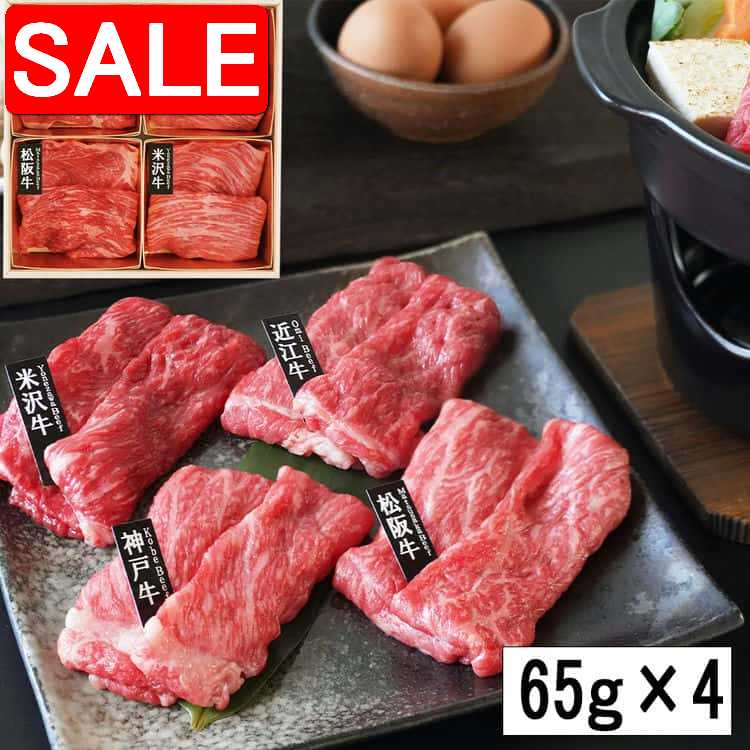【スーパーSALE 10%OFF!】 山晃食品 日本四大和牛 すき焼き しゃぶしゃぶ用 各65gx4 黒毛和牛 牛肉 スライス 神戸牛 ・松阪牛 ・近江牛 ・米沢牛のモモ肉を薄くスライスしました ご進物 ギフト 贈り物に 離島配送不可