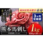 ふるさと納税 馬肉 熊本県 菊池市 3ヶ月定期便 馬刺し 赤身 馬刺し 1kg 純 国産 熊本 肥育 たっぷり タレ付き 生食用 冷凍《お申込み翌月に出荷予定》送料無…