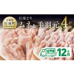 ふるさと納税 【12ヶ月定期便】宮崎県産若鶏 日南どり むね肉&手羽元 計4kg(各2kg×1) 【 ふるさと納税 鶏肉 鶏 若鶏 むね 手羽元 セ.. 宮崎県川南町