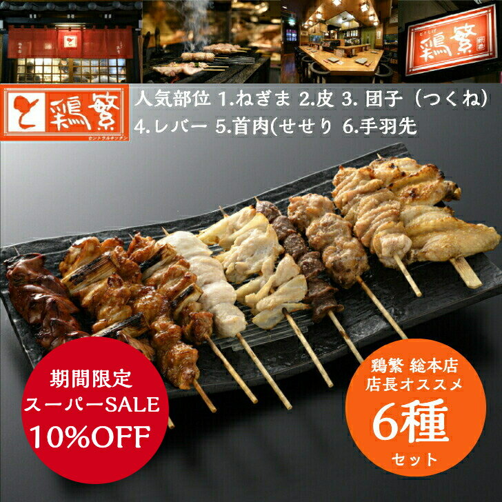 10%OFF【鶏繁 総本店人気6種】1.ねぎま 2.皮 3.団子(つくね) 4.レバー 5.首肉(せせり) 6.手羽先 食べ比べ 焼き鳥セット 各3・4・5・10・20本 ★贅沢ギフト★クリスマス★お歳暮【国産】岩手県産 高級 銘柄鶏 南部どりしんばし鶏繁【送料無料 】誕生日 お取り寄せグルメ