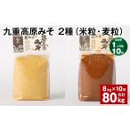 【ふるさと納税】【定期便】【1ヶ月毎10回】九重高原みそ 2種(米粒・麦粒) 各1kg×4袋 計80kg(8kg×10回) 米みそ 麦みそ 味噌 甘口 大麦 大豆 おかず味噌 調味料 大分県産 九州 国産 大分県 九重町 送料無料