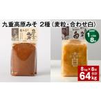ふるさと納税 味噌 麦味噌 大分県 九重町 1ヶ月毎8回定期便 九重高原みそ 2種 (麦粒・合わせ白) 計64kg(8kgx8回) 麦みそ 白みそ