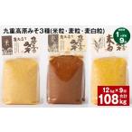 ふるさと納税 味噌 米味噌 大分県 九重町 1ヶ月毎9回定期便 九重高原みそ 3種 (米粒・麦粒・麦白粒) 計108kg(12kgx9回) 味噌 みそ
