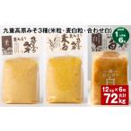 ふるさと納税 味噌 米味噌 大分県 九重町 1ヶ月毎6回定期便 九重高原みそ 3種 (米粒・麦粒・合わせ白) 計72kg(12kgx6回) 味噌 みそ 調味料