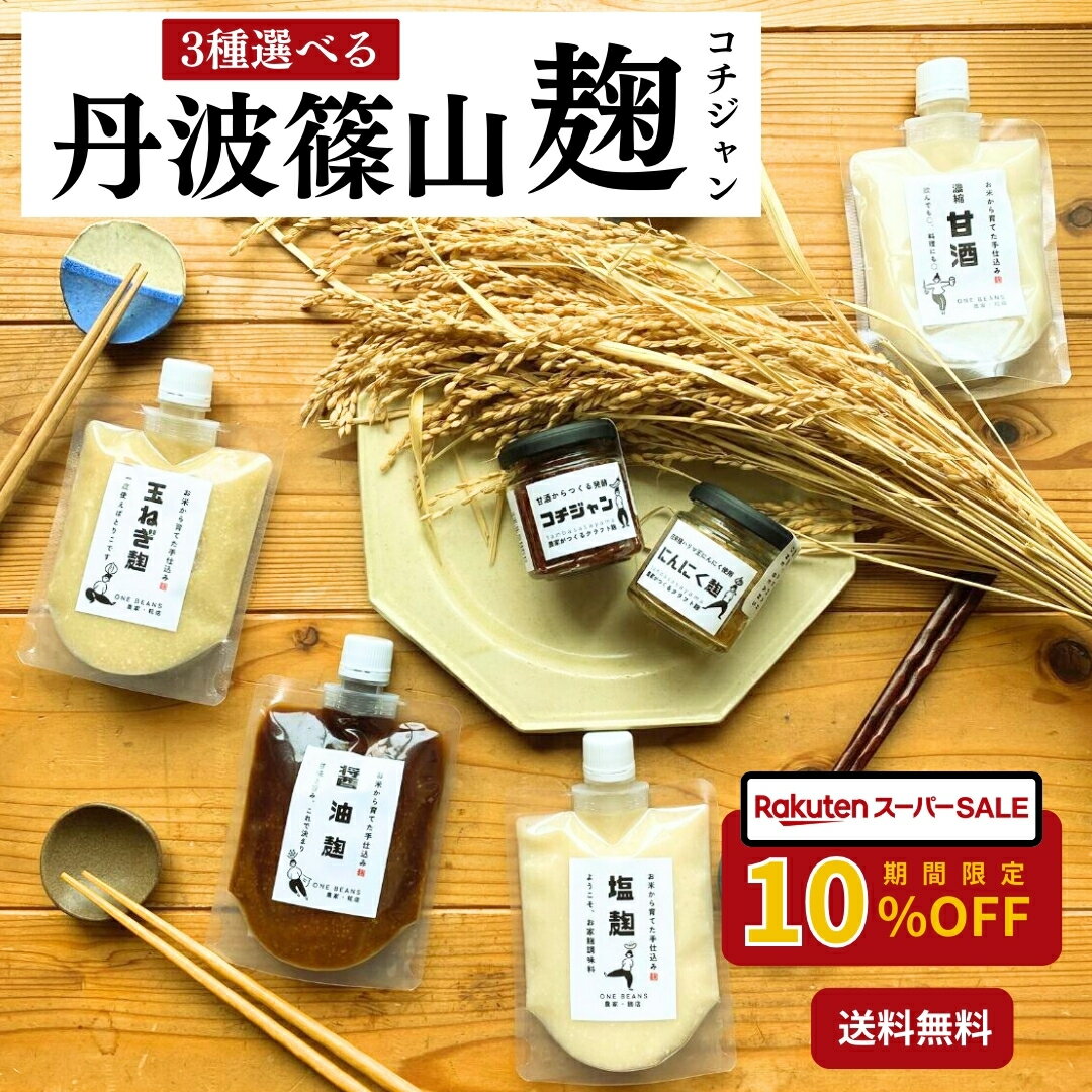 【★SALE★10%OFF】福袋 選べる3商品【送料無料】麹 糀 コチュジャン 無添加 丹波篠山産米 甘酒 塩麹 醤油麹 玉ねぎ麹 にんにく麹 バジル麹 コチジャン 減農薬 化学肥料不使用 万能調味料 手作り 美味しい 料理 国産 母の日 最強配送 送料無料