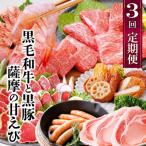 ふるさと納税 枕崎市 総重量3Kg越え、鹿児島県産黒毛和牛と黒豚のお料理定期便(3回配送) EE0-0002
