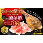 ふるさと納税 【特Aのブランド米で育てた】黒豚諫美豚プレミアム100 原木生ハム 8kg / 豚肉 ぶたにく 肉 ハム はむ モモ もも 原木 げんぼく / .. 長崎県諫早市