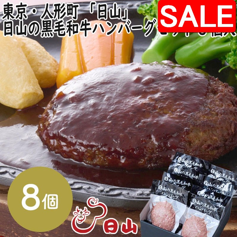 【スーパーSALE 10%OFF!】 東京・人形町 「日山」 日山の黒毛和牛ハンバーグセット 8個入 1912年創業肉の名店「日山」 素材を吟味した味わい深いハンバーグ