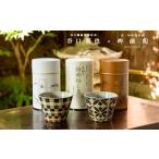 ふるさと納税 お茶類 ほうじ茶(茶葉・ティーバッグ) 京都府 京都市 柳桜園×京焼 人気ほうじ茶缶3種詰合せ×谷口晋也作 猪口湯呑2客「市松」「七宝」