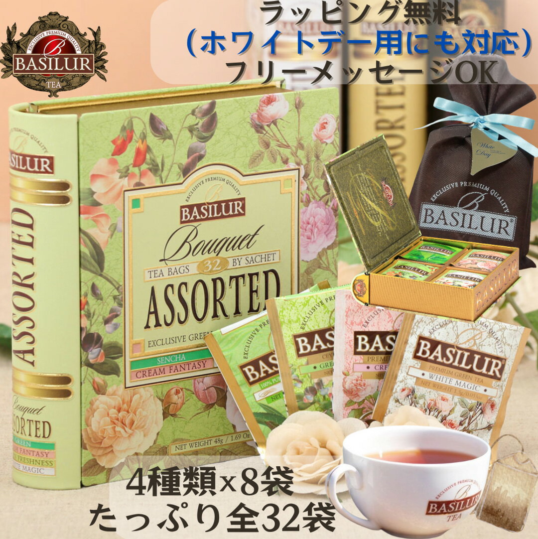女性に人気!緑茶ギフト(ティーバッグ32袋) ホワイトデー お返し 誕生日プレゼント 女友達 おしゃれ 缶 かわいい 個包装 詰め合わせ グリーンティー フレーバーティー ブック型 紅茶専門店 高級 フラワーソープ 20代 30代 40代 50代 チョコ以外 贈り物 母の日 バシラーティー