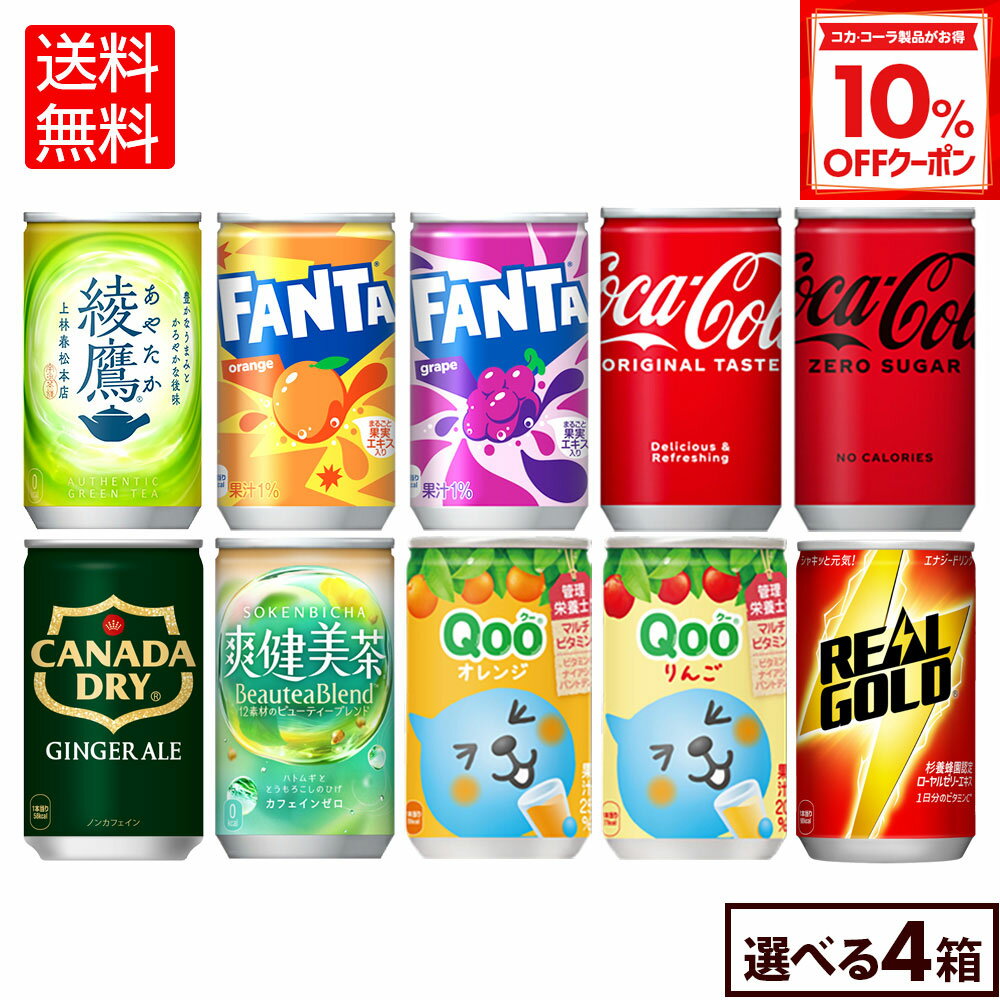 【10%OFFクーポン対象 12/11 23:59まで】コカ・コーラ 選べる よりどりQoo 爽健美茶 綾鷹 リアルゴールド ファンタ 綾鷹 160ml 缶 30本入り×4ケース【送料無料】
