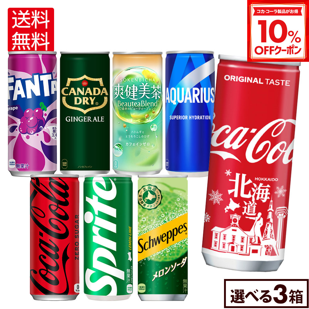 【10%OFFクーポン対象 12/11 23:59まで】コカ・コーラ ドリンク 爽健美茶 アクエリアス コカ・コーラ ファンタ 250ml 245ml 缶 30本入り×3ケース【送料無料】