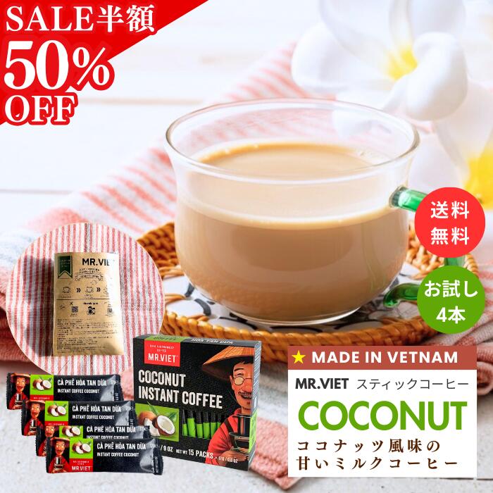【スーパーSALE★半額50%OFF&送料無料】スティックコーヒー ココナッツ ベトナムコーヒー|MR.VIET ミスターベト スティックコーヒー 個包装 甘いコーヒー インスタント ポイント消化 コーヒー 送料無料 ホワイトデー スーパーセール セール 半額 プチギフト 500円