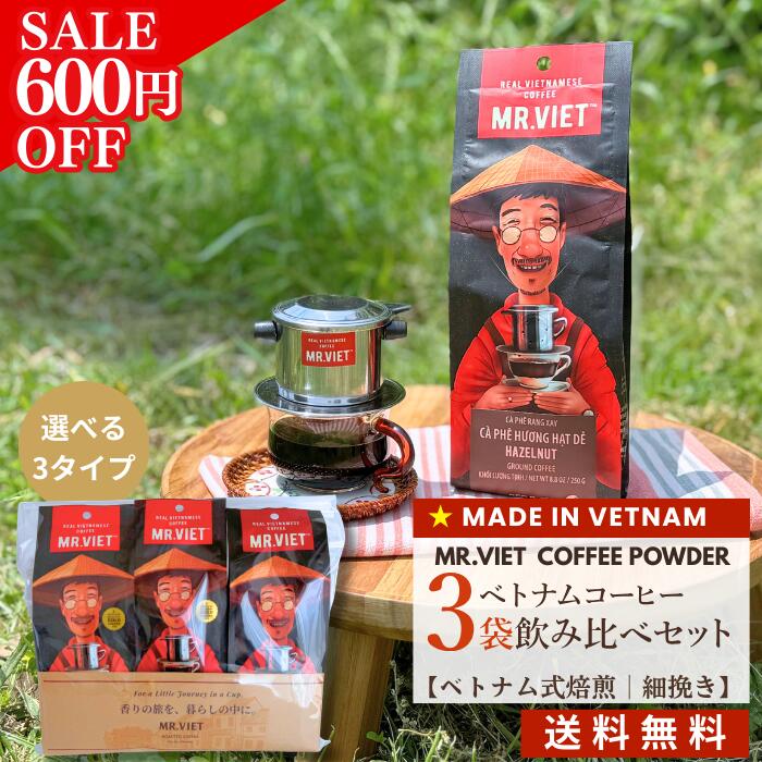 【スーパーSALE★600円OFF&送料無料】コーヒー粉 まとめ買い 細挽き 深煎り ベトナムコーヒー |MR.VIET(ミスターベト) 1袋250g×3袋 飲み比べ コーヒーセット 焙煎コーヒー レギュラー 送料無料 500g〜2kg コーヒーギフト 詰め合わせ スーパーSALE スーパーセール