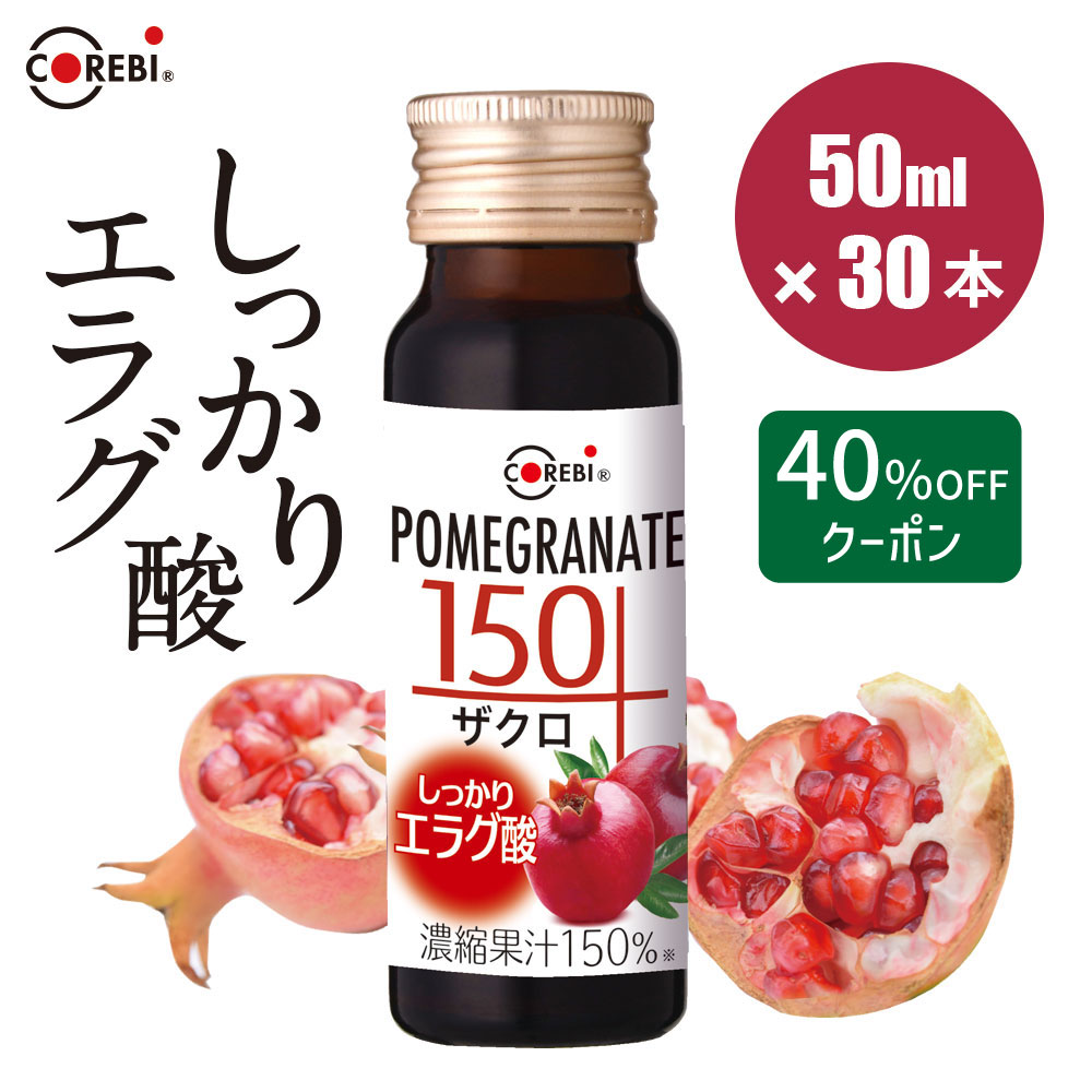 【 40%OFFクーポン 】【 訳あり 在庫処分 】高果汁150% ザクロ150 50ml×30本 ※賞味期限:2026年2月19日 保存料 香料 無添加 果汁100% 以上1.5倍の高濃度 COREBI ざくろジュース ザクロジュースドリンク サプリ