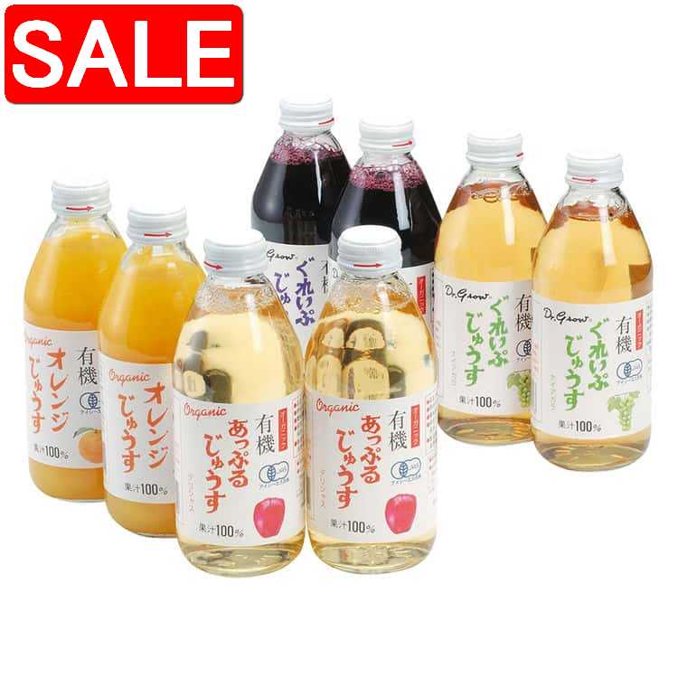 【スーパーSALE 10%OFF!】 オーガニックジュース 250mlx8 グレープコンコードx2 グレープナイアガラx2 アップルx2 オレンジx2 米国ワシントン州・スペインカタロニア州両政府認定の有機果実が原料の有機無農薬ジュース
