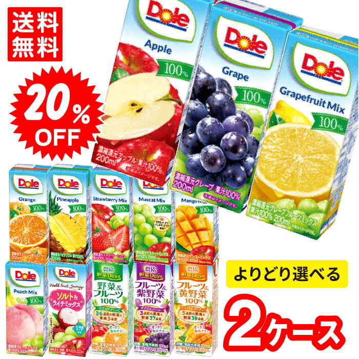 \SALE 20%OFF/【選べる種類】【送料無料】雪印メグミルク Dole ドール LL200ml 2ケース(2種類×18本) ジュース 飲料 フルーツジュース まとめ買い 常備品 差し入れ お見舞い ギフト お中元 お歳暮 飲み切りサイズ ストック
