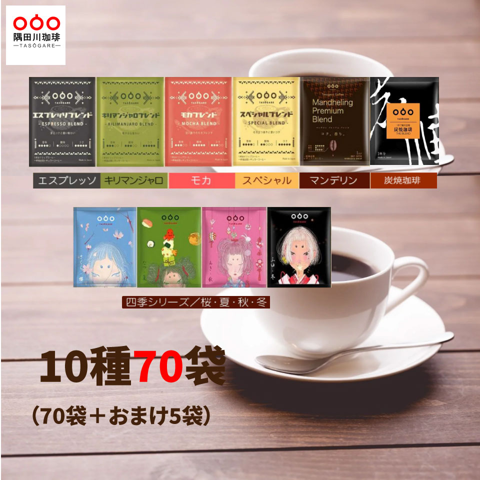 TASOGARE (タソガレ)隅田川タソガレ珈琲のドリップコーヒー コーヒー 75杯 10種 飲み比べ セット 珈琲 四季シリーズ(桜夏秋冬)商品情報【原材料】コーヒー豆【種類】1.マンデリン・プ...