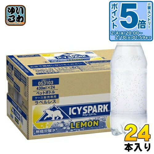 〔10%OFFクーポン&エントリーでP5倍+6倍!〕 コカ・コーラ アイシー・スパーク from カナダドライ レモン ラベルレス 430ml ペットボトル 24本入 炭酸水 炭酸飲料 強炭酸 檸檬