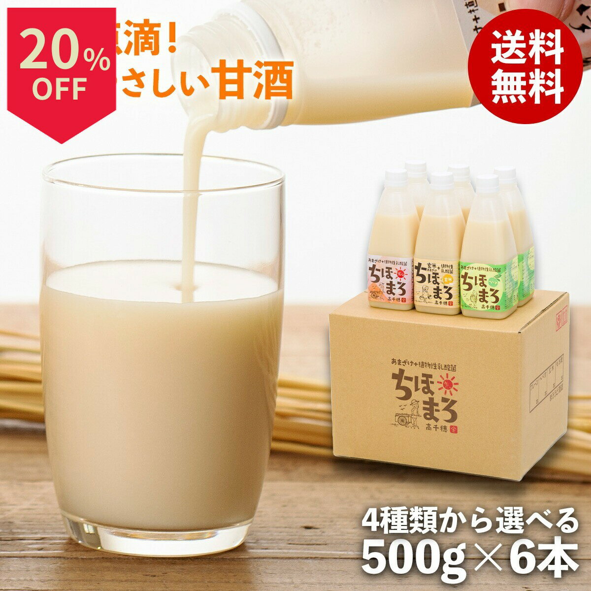 \8日はお買得!20%OFF+ポイント2倍確定/甘酒 乳酸菌 ちほまろ 砂糖不使用 無添加 フルーツあまざけ 玄米甘酒 米麹 ノンアルコール 飲む点滴 高千穂ムラたび 500g 6本 送料無料 腸活 菌活 健康志向 ギフト プレゼント 発酵甘酒
