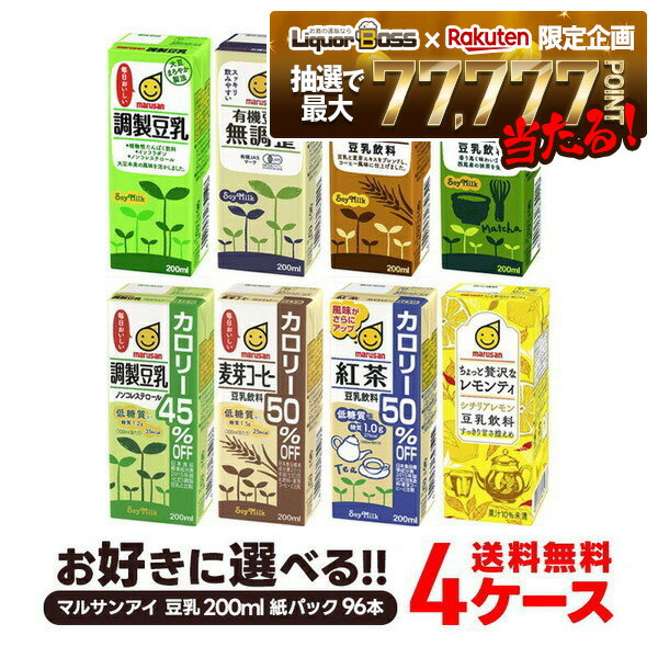 【抽選で1等77,777ポイント当たる!】【送料無料】【よりどり4ケース】選べる マルサンアイ 豆乳飲料 よりどりMIX 豆乳 200ml 紙パック 96本 [24本×4箱]