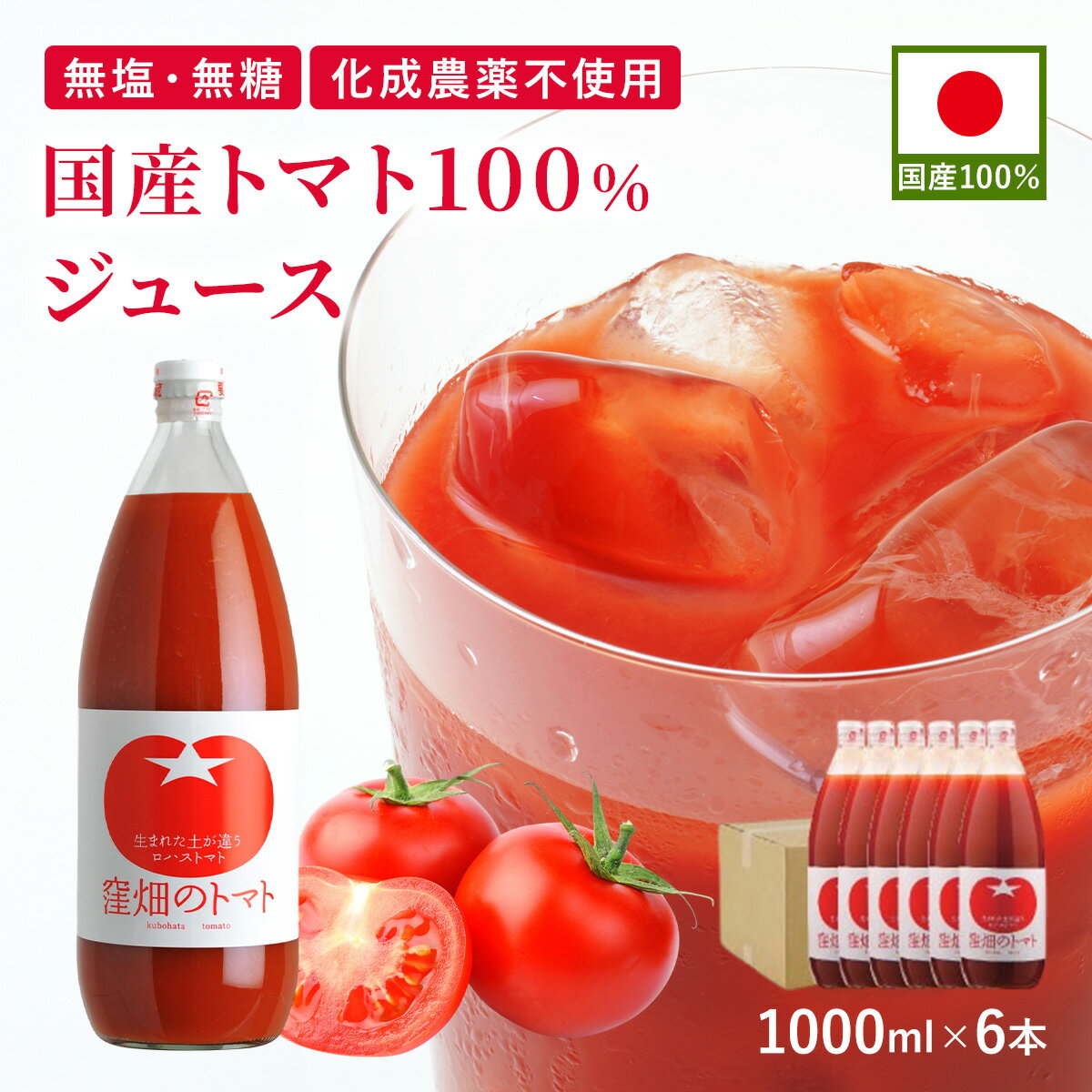 国産トマト100%ジュース 1,000ml×6本 1L 瓶 国産 濃厚 リコピン 完熟トマト 山形 ストレート ギフト プレゼント 贈り物 お中元 御中元 お見舞い ご家庭用おまとめ商品 朝食 健康習慣 野菜ジュース 野菜飲料 無添加 無塩 食塩無添加 無糖 砂糖不使用 オーガニック