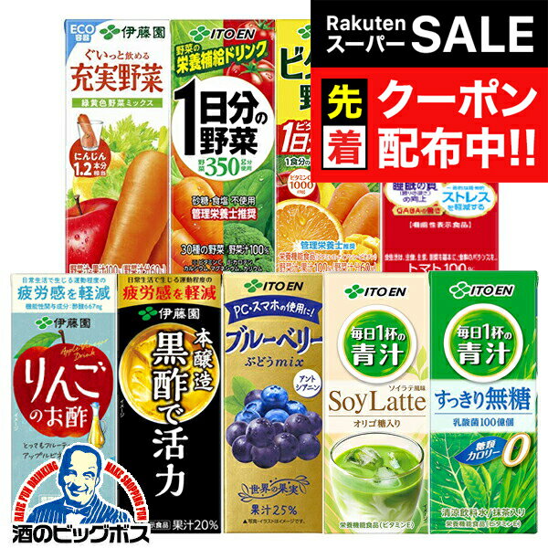 伊藤園 野菜ジュース 選べる 紙パック200ml 24本入×3ケース (合計72本) (送料無料)1日分の野菜 トマトジュース ザクロ 黒酢 青汁
