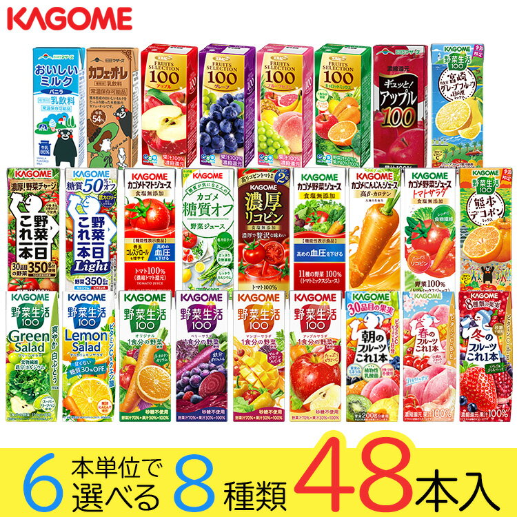 カゴメ 野菜ジュース 選べる2ケース セット 200ml/195ml 48本(24本×2ケース)野菜生活【送料無料※一部地域は除く】 紙パック トマトジュース まとめ買い フルーツ 季節限定 濃厚リコピン 巨峰 マスカット 青森りんご キウイ 有田みかん
